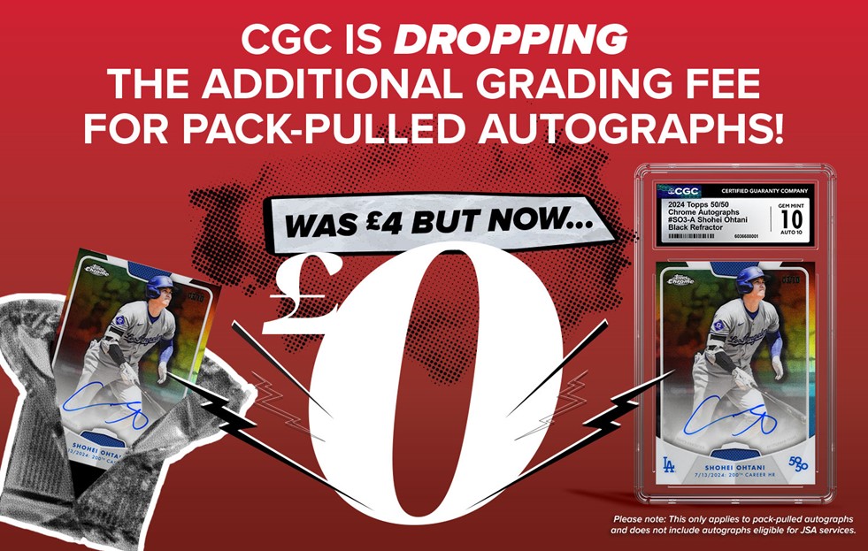 "CGC continues to listen to its customers and strives to deliver the best submission experience in the industry," said Andy Broome, CGC Cards Vice President. "Therefore, we have decided to eliminate the additional £4 for pack-pulled autographed cards, which reinforces our commitment to transparent and affordable grading services for every level of collector in the hobby."